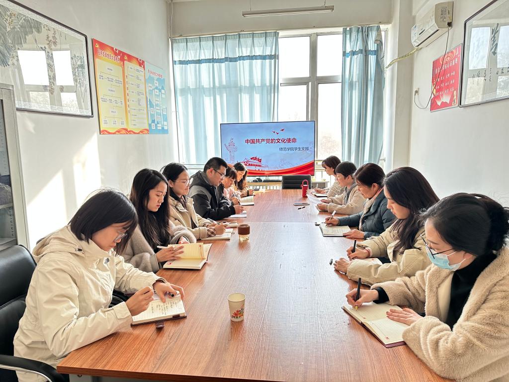 为进一步深入学习宣传贯彻党的二十大精神,筑牢党员干部理想信念根基,11月28日下午,beat365中文官网学生党支部在师范楼二楼会议室开展了书记讲党课活动,学生党支部党员及入党积极分子参加了党课学习。