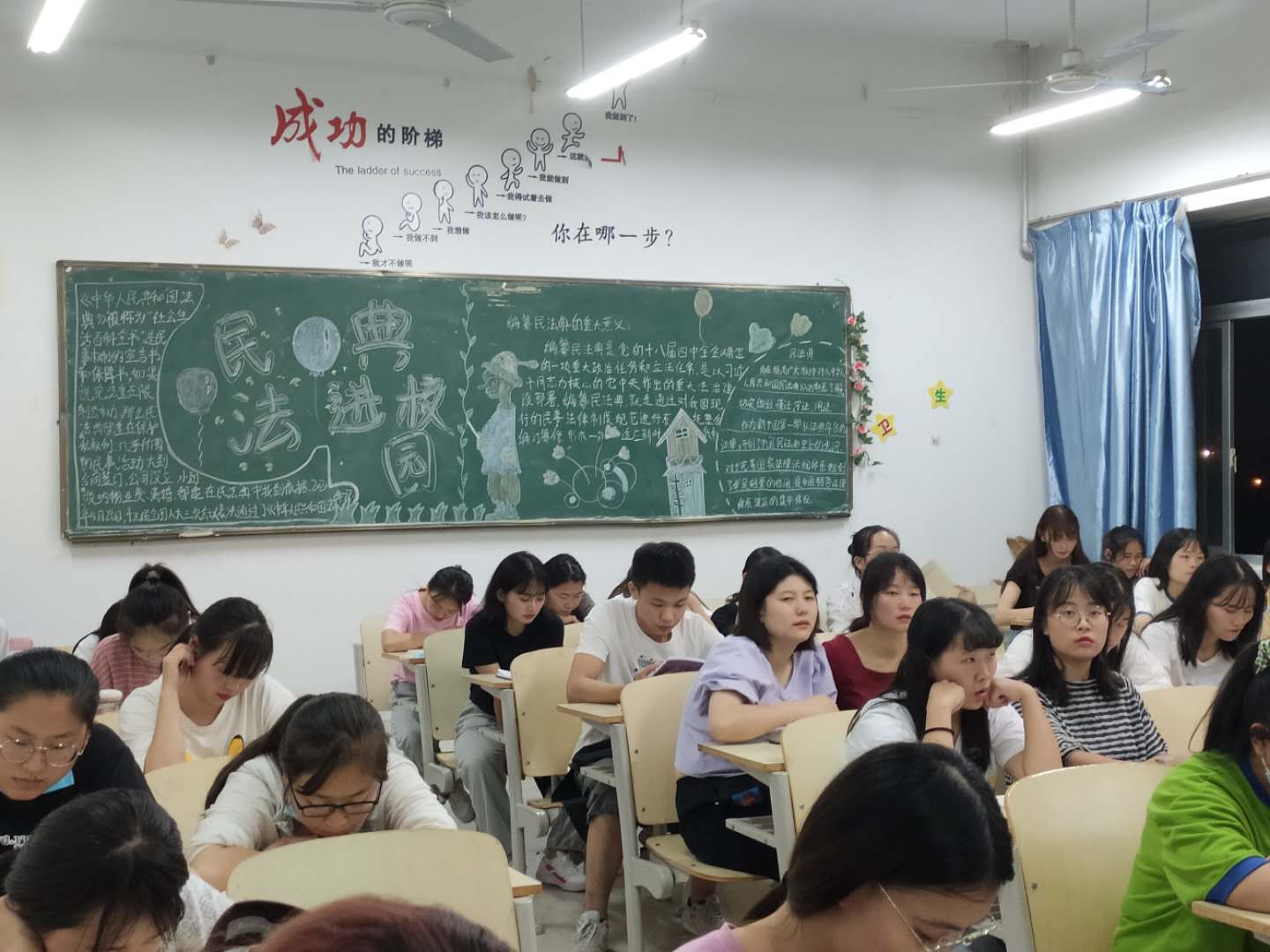 在此次班会上,各班班长整理了关于《中华人民共和国民法典》有关的材料和视频,通过播放PPT等形式,向学生宣讲了民法典编撰的重要意义,并联系与实际生活相关的法律法规,针对大学生群体进行了详细的讲解,使同学们体会到《中华人民共和国民法典》在法律体系中的重要地位,在学习的过程中,增强了自身法治意识,树立强大的法制观念。