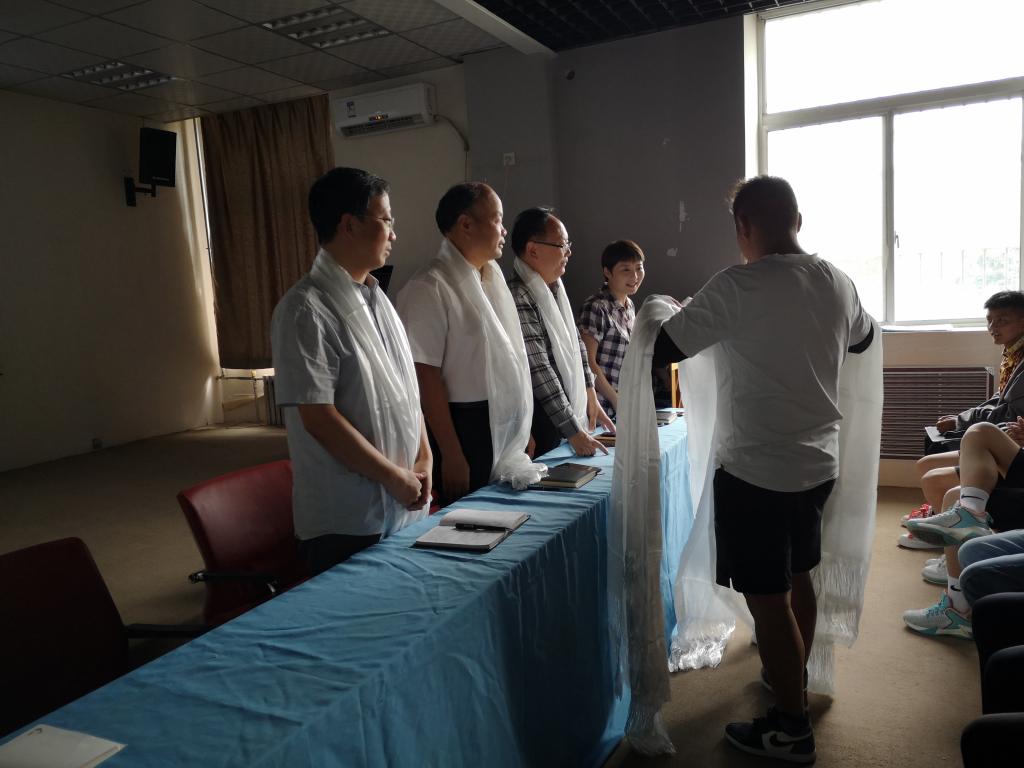 在热烈的掌声中,阿里师生向与会的beat365中文官网领导、老师献上了哈达。
