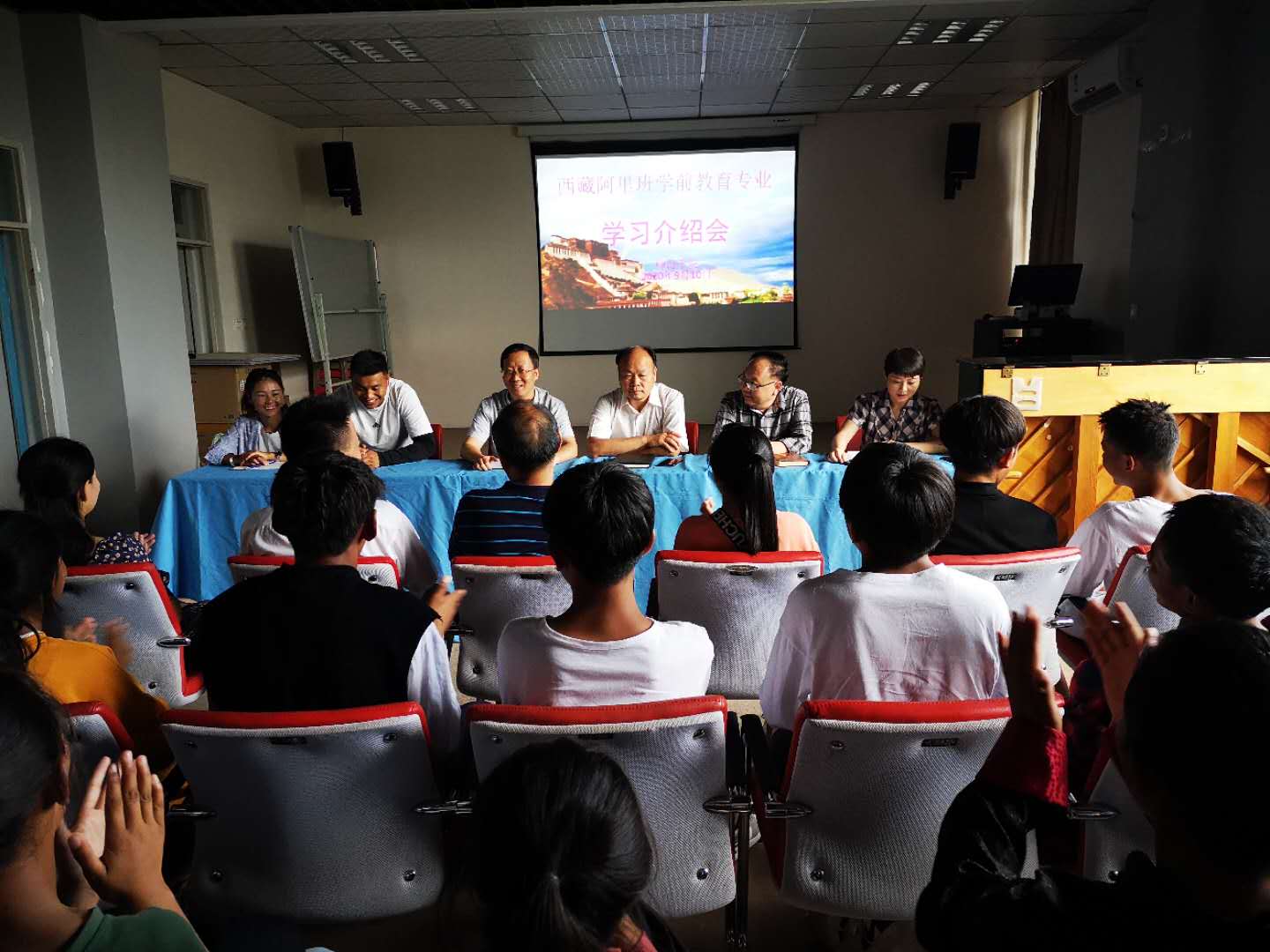 9月10日下午,beat365中文官网西藏阿里班学前教育专业学习介绍会在师范楼二楼视听室举行。beat365中文官网领导班子成员、四名援藏教师及阿里班两名带队教师和25名学生参会。会议由院党总支副书记黄翠萍主持。