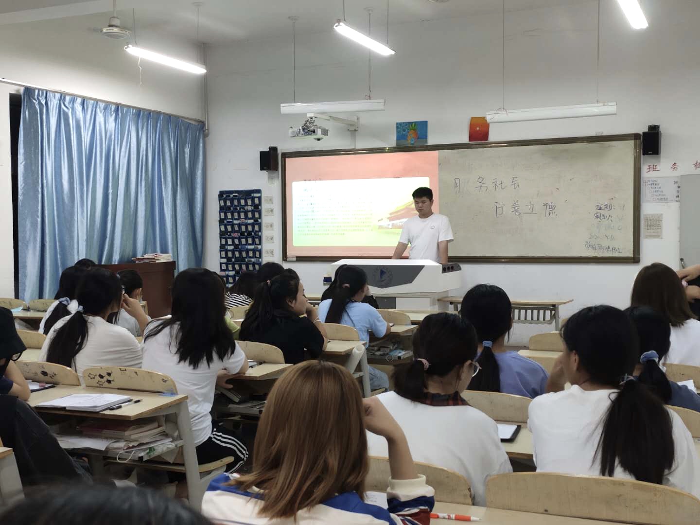 在团支书的带领下,各班同学围绕实现中华民族伟大复兴中国梦为目标,从不同层次和角度认识到推进志愿服务制度化、规范化的重要性。团支书要求大家要认真学习雷锋精神,践行优秀品质,将善与德作为培育和践行社会主义核心价值观、弘扬新时代的基点,在服务社会的过程中,不断提升自我。