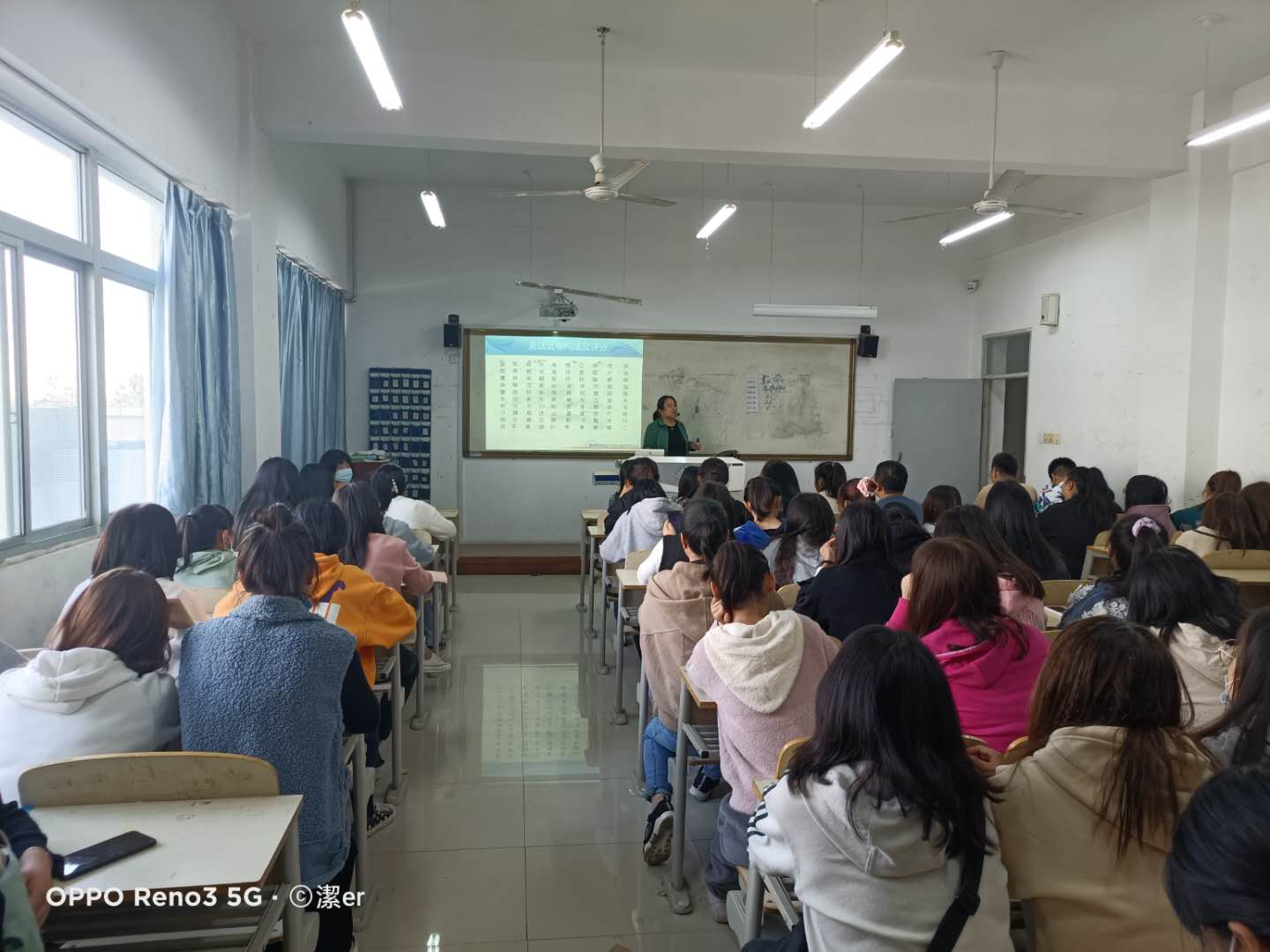 培训在师范楼305和306多媒体教室进行,分别由我校国家级普通话水平测试员王泉珍和雷立英两位老师担任主讲,约1000多名学生参加了培训。