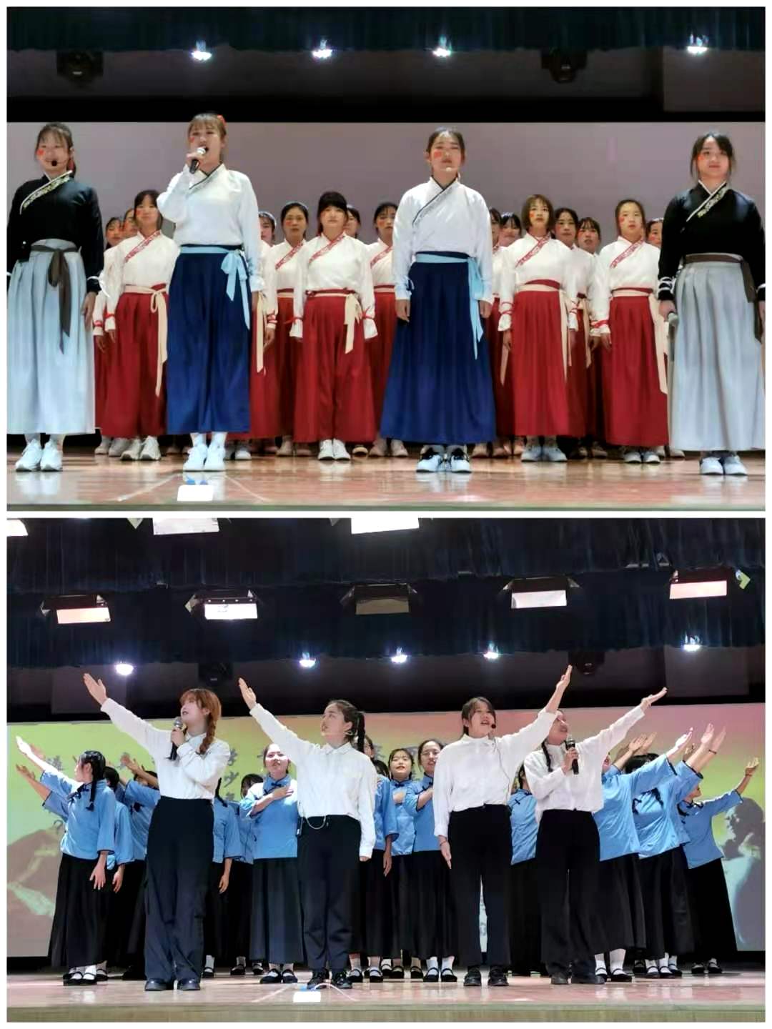 经过激烈角逐,学前五高1801 班的《老师,长大后我就成了你》,学前高职1902 的《我有一个强大的祖国》,小教高职2004 班的《沁园春•长沙》,学前五高1901的《钗头凤》,学前高职2005班刘钰钰同学的《祖国啊,我亲爱的祖国》荣获三等奖;学前五高1803班的《我骄傲,我是中国人》,小教1902班的《水调歌头》,学前五高1801班李文靖的《再别康桥》荣获二等奖;学前高职2006 的《少年中国说》和学前高职1901班刘玉洁的《我骄傲,我是一名老师》喜获一等奖。