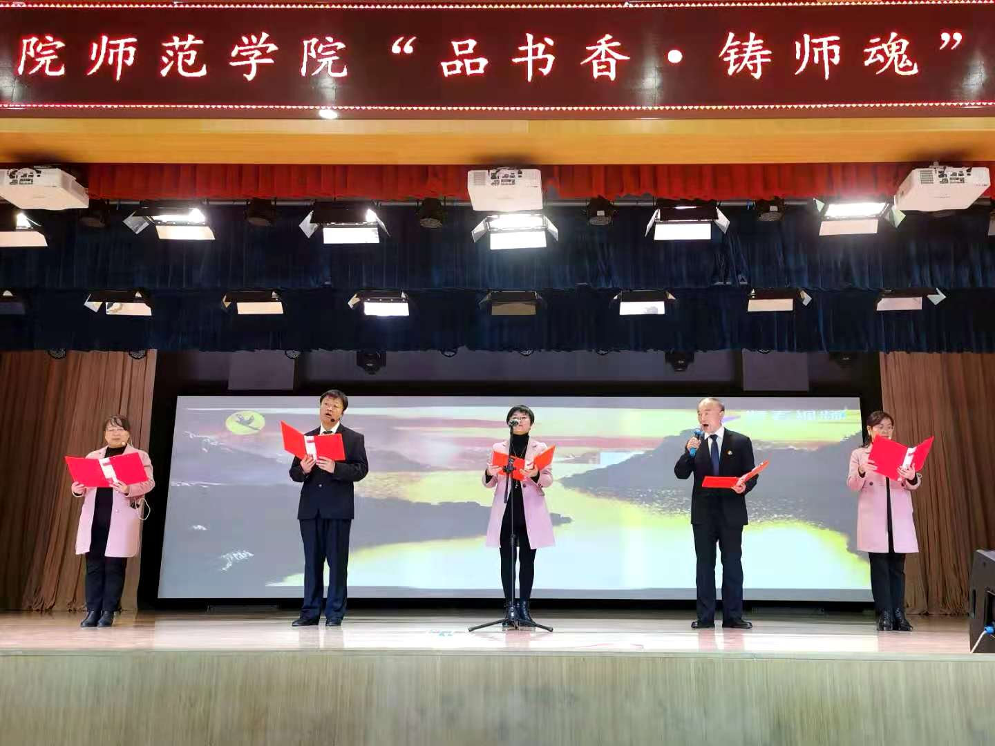 为传承和弘扬中华传统文化,讴歌时代精神,推动书香校园建设,丰富学生的文化生活,增强学生的民族自信心和自豪感,使学生在诵读中获得思想熏陶,在美的享受中提高鉴赏能力和艺术修养,11月19日下午,beat365中文官网举办了“品书香·铸师魂”诗文诵读比赛。党委副书记、校长张雄教授,学生处处长罗峰,教务处处长赤保民,团委书记党晓鹏,院报编辑部主任王晓莉,基础课部副主任郭宝莉,beat365中文官网党总支书记卢百龙、院长郭楚伟、副院长李有成、党总支副书记黄翠萍等莅临比赛现场。