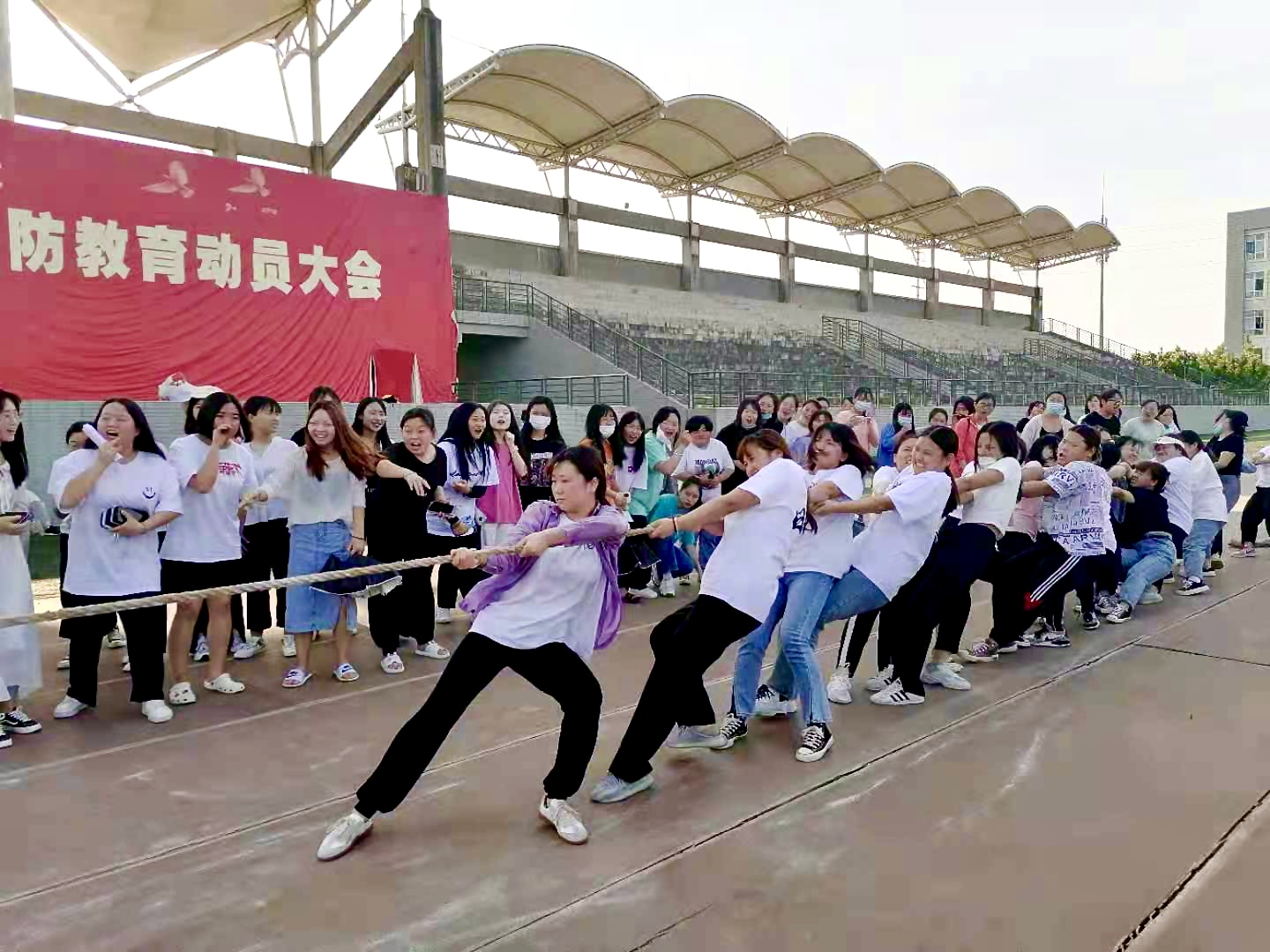 为了丰富大学生的校园文化生活,提高大学生的身心素质,增强班集体凝聚力,营造积极向上、健康文明的校园文化氛围,5月12日beat365中文官网举行了校园拔河比赛,全体学生以极大的热情投入到本次活动中。