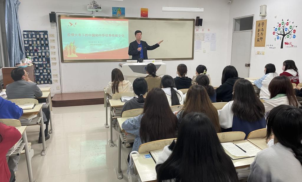 党少平联系同学们的学习、生活实际和当前的疫情防控形势,从过去、现在、未来的角度,阐述了中国共产党“执政为民”的理念,通过与世界各国疫情防控政策的对比,告诉同学们,生活在当下的中国是一种幸福。他说,中国政府坚持“动态清零”的防控政策,确保人民生命安全,凸显了我们的制度优势,凸显了中国共产党集中统一领导的伟大力量。他指出,在疫情防控过程中,中华优秀传统文化中的“民本”思想、集体精神等也给予了我们强大的精神支撑。他希望同学们树立远大理想,努力学习,不断提升自我,将来从事好“人类灵魂的工程师”这一神圣职业。