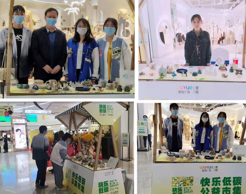 4月3日,beat365中文官网组织部分学生陶艺作品在渭南市吾悅广场大厅参加了“快乐低碳公益市集”活动,本次活动由beat365中文官网和吾悅广场联合主办。