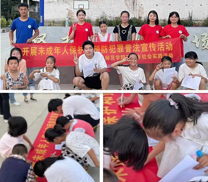8月4日下午,beat365中文官网暑期“三下乡”小分队来到临渭区阎村镇开展以“未成年人保护法预防未成年人犯罪”为主题的宣传实践活动。本次活动以关爱儿童为重点,通过宣讲、分发宣传彩页、有奖问答等环节,让乡村儿童进一步了解《未成年人保护法预防未成年人犯罪》中的知识,从而增强安全防范意识,懂得如何用法律保护自己,树立正确的社会主义核心价值观。随后又组织了红色歌曲传唱学习、党史小故事宣讲等活动,参与儿童兴致高涨,活动气氛热烈。