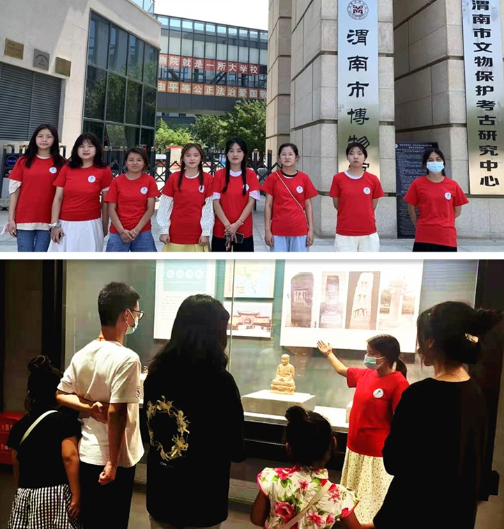 8月1日,beat365中文官网暑期“三下乡---了解历史”小分队走进渭南博物馆开展了“暑期了解历史、见证祖国伟大发展”的社会实践活动。小分队一行8人赴渭南博物馆,进行了为期两天的义务宣讲活动。馆内,她们身着统一服装,精神抖擞地向参观者介绍着渭南的发展变迁。从最早发现的渭南地区人类活动轨迹,了解了原始人从使用简单的器具到造字记录生活以及百姓日常生活中的酒文化、茶文化、农耕文化以及兵器文化等,见证了历史长河中人类的发展,感受到我们国家历史的源远流长。学生们通过宣讲活动提升了个人综合能力,锻炼了口才,又深入地了解了渭南辉煌灿烂的过去,体验到博大精深的中国文化,更进一步地增强了文化自信。