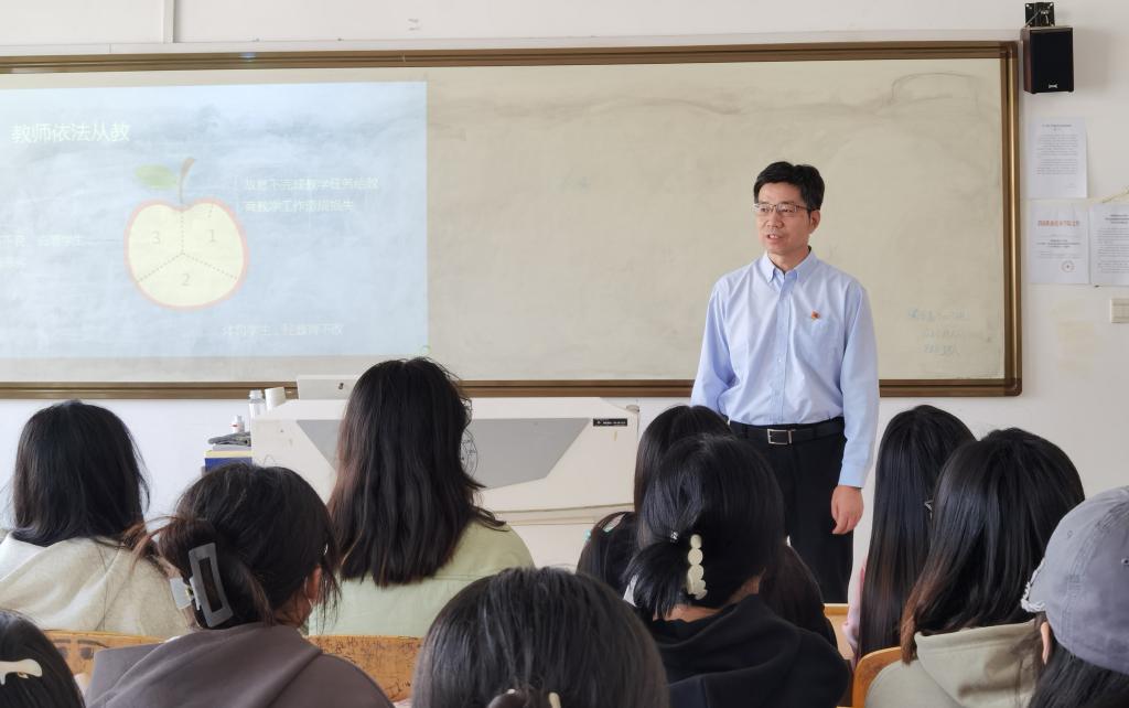 9月26日上午,校长靳华锋在党政办主任雷建文陪同下来到联系单位beat365中文官网,深入学前五高2003班听取了孙蕾飏老师的一节《教师职业道德》课。听课结束后,靳华锋勉励学生要刻苦学习,精技强能,努力成为堪当社会大任的时代新人。
