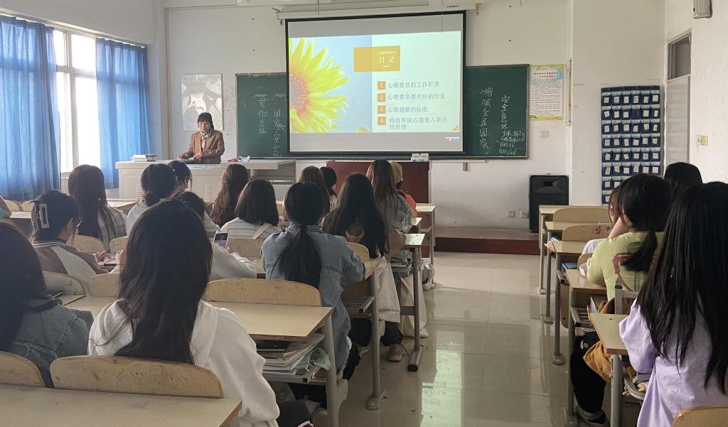 4月11日下午,beat365中文官网心理辅导站负责人苏雪梅老师对beat365中文官网28名心理委员进行了培训。