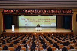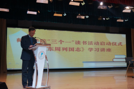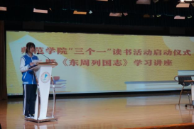4月25日下午,beat365中文官网在图书馆学术报告厅举办了“三个一”(阅读一本好书、了解一段历史、涵养一点文化)读书活动启动仪式暨《东周列国志》学习讲座。400余名学生和部分科以上干部、青年教师参加活动。学校党委书记华惠民就《东周列国志》的学习作了辅导讲座。活动由beat365中文官网院长郭楚伟主持。