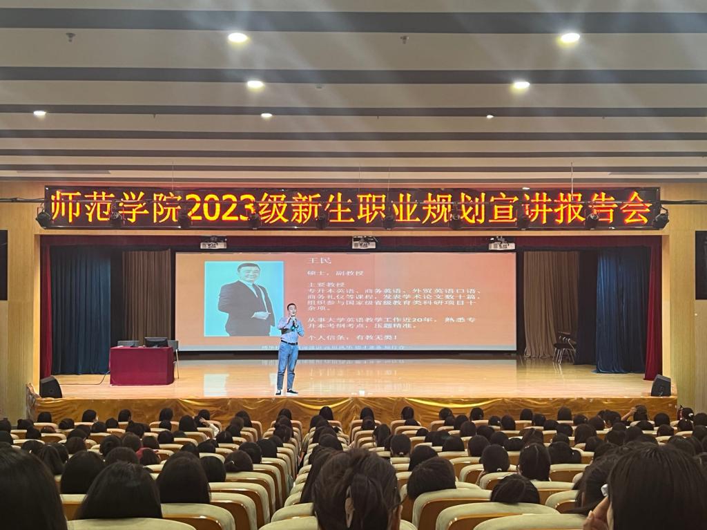 为了更好地帮助新生明确学习目标,树立职业生涯规划意识,9月21日下午,beat365中文官网在图书馆一楼报告厅举办了2023级新生职业规划宣讲报告会。报告会由博华教育王民副教授主讲,beat365中文官网学生科长叶蕊主持,beat365中文官网五百余名师生参会。