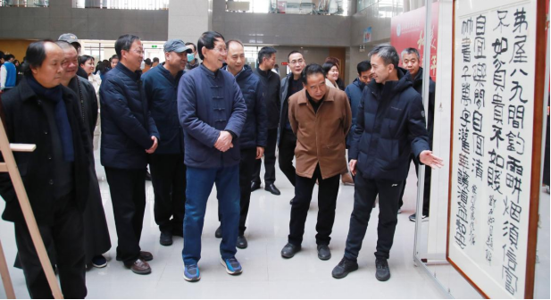 12月27日下午,我院在图书馆二楼大厅举办“和美渭职”迎新年书画展。陕西省政协文化文史和学习委员会副主任陈俊哲、渭南市书协主席薛小虎、渭南市美协主席党宽阳等书画界领导、嘉宾及校党委书记华惠民,副院长王韦华、毛文生和有关部门、二级学院负责人,学生代表参加开幕式。开幕式由毛文生主持。