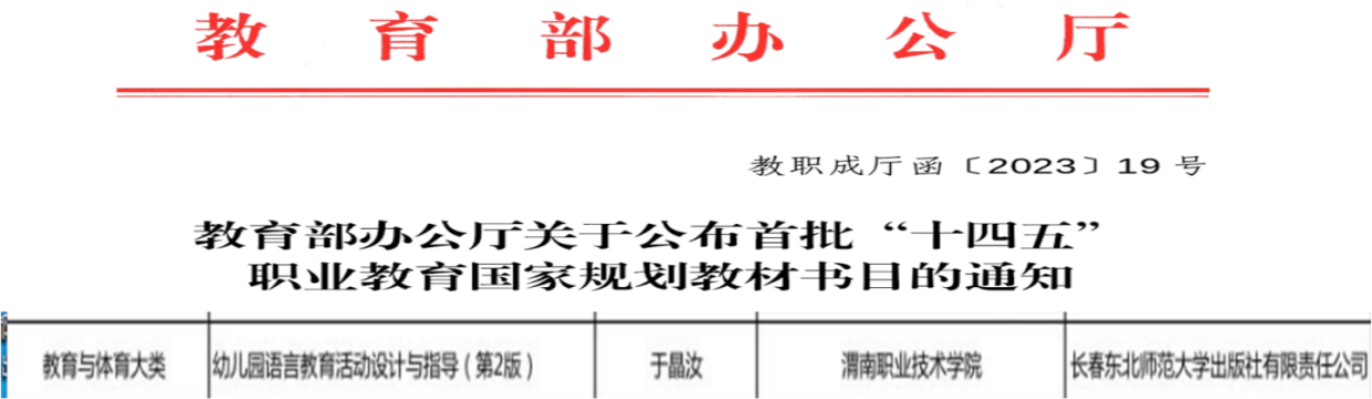 聚焦落实立德树人根本任务,在打造精品教材上发力。副院长于晶汝主编的《幼儿园语言教育活动设计与指导(第2版)》入选国家“十四五”首批规划教材目录。新立项校级教材项目4个。