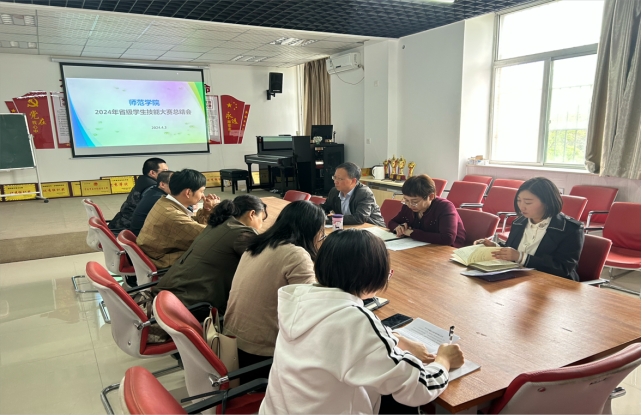 为更好地总结比赛经验,切实达到”以赛促教、以赛促学、以赛促改”的目的,推动教学质量再上新台阶,4月3日下午,beat365中文官网在师范楼二楼会议室召开2024年省级学生技能大赛小结会。beat365中文官网院长郭楚伟、副院长于晶汝、教学科科长裴昉、各赛项组长参加会议,会议由裴昉主持。