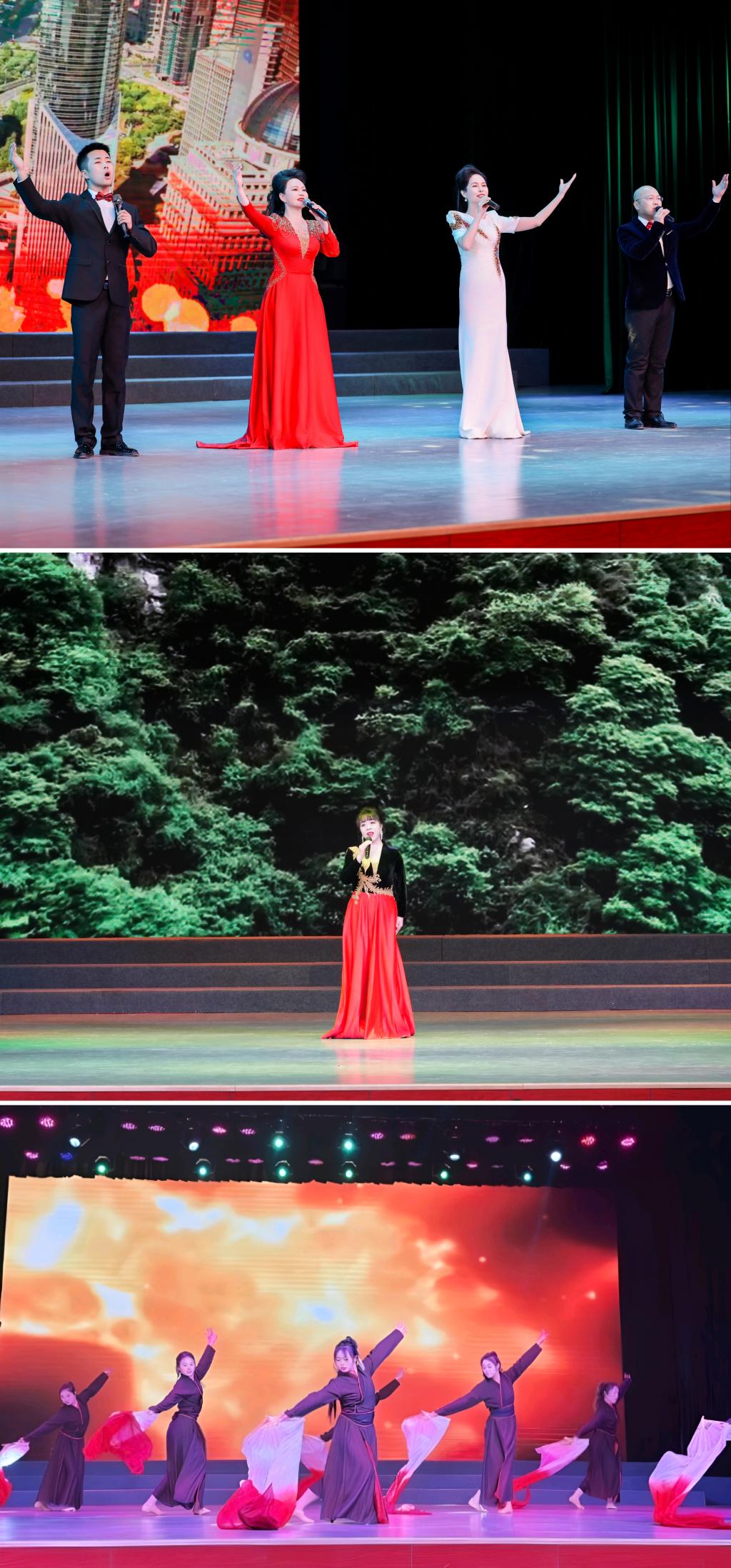 学院美育中心副主任杨文华参加了《序》篇的经典歌曲联唱和尾声歌伴舞《乘风破浪再出发》,工会职工姜永华以一曲《渭南美》深情演绎了渭南大地的壮美风光和美好生活,大学生艺术团的学生带来的舞蹈《雾》以独特的创意和精湛的表演赢得了阵阵喝彩。