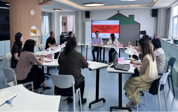 为深化产教融合,优化人才培养方案,提升实训室管理水平。5月16日,beat365中文官网副院长李永明带队,学前教研室、音乐教研室、早期教育教研室负责人及实训中心主任一行五人赴陕西职业技术学院学前教育学院开展人才培养工作调研。陕西职业技术学院学前教育学院院长冯国荣、教学主管张扬、各专业负责人及广东职教桥数据科技有限公司董事副总经理刘伟平等参加座谈并交流。