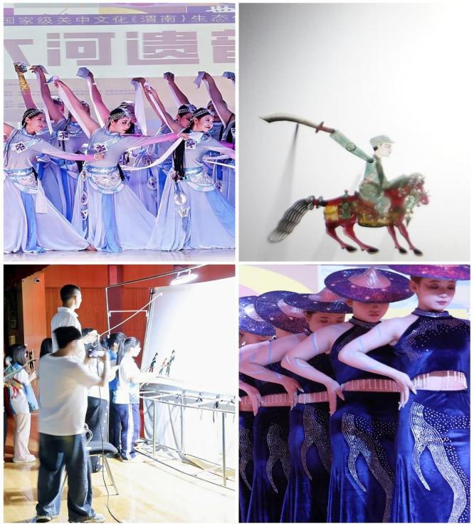 活动在我校学生表演的民族舞蹈《天浴》中开启。随后,宁夏的吴春杨、光素、赵畹茹,青海的贾瑞芸,甘肃的牛恬恬,陕西的韩文学、苏峰、王莹等8位宣讲团成员登台,为现场观众带来了一场别开生面的非遗盛宴。他们分别讲述了宁夏八宝茶的制作流程、宁夏手工毯的指尖技艺、宁夏滩羊的美食文化以及青海土族盘绣的绚丽多彩、甘肃环县道情皮影的优美唱腔和陕西仓颉造字的传奇故事、黄帝陵的文化意义和渭南丰富的非遗资源,从传统技艺的精湛呈现到文化象征的深刻解读,全方位、多角度地展现了黄河流域非物质文化遗产的独特魅力,令现场观众为之陶醉,掌声此起彼伏。我校皮影社团的学生也登台献艺,表演了皮影剧《抗战之歌》,生动展现了抗日战争时期先辈们英勇无畏、保家卫国的英雄事迹,体现了我校在非遗传承与教育方面取得的成果。