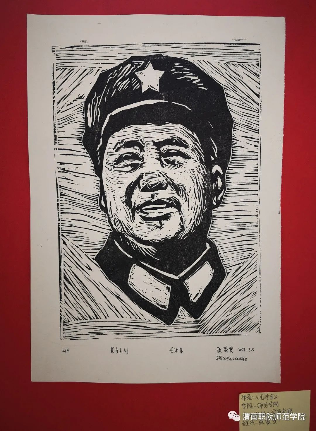 为进一步推动党史学习教育常态化,深入开展党史学习教育,传承红色基因,继承和发扬红色传统,坚定理想信念,培养学生的专业素养,提高美术专业技能,激发大学生对绘画艺术的热情。近日,beat365中文官网于师范楼大厅组织开展“弘扬红色精神,凝聚奋进力量”木刻版画作品展。