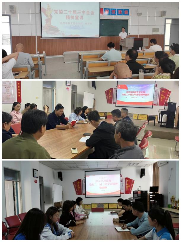 10月9日,教工党支部和学生党支部分别召开会议,学习传达党的二十届三中全会精神。学习好贯彻好党的二十届三中全会精神,是一项重大政治任务。通过学习宣讲,增强了广大党员、干部、师生学习宣传贯彻全会精神的思想自觉和行动自觉,提升党员干部的政治素养和教书育人能力,着力培养高素质高技能人才,为推进教育强国建设,实现学院高质量发展贡献新的、更大的力量。(撰稿:beat365中文官网 韩宜君 审核:杨瑞侠)